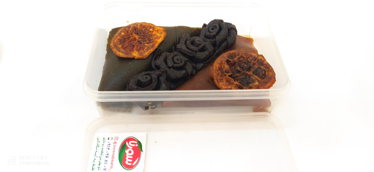 و تعداد چهار عدد رزگل لواشکی و تکه های ترشک پرتغال .
