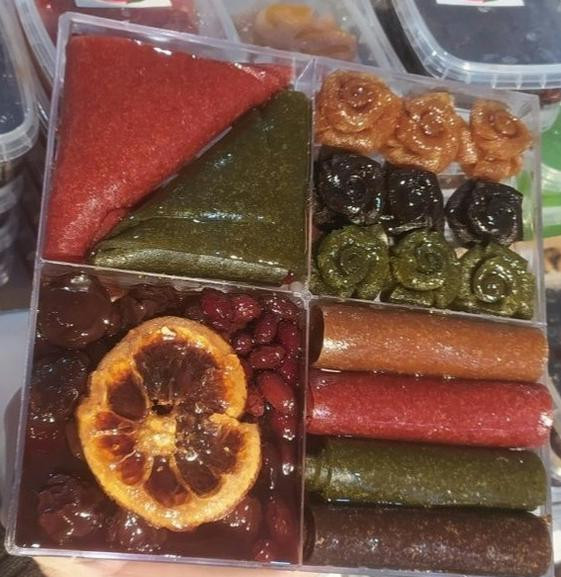 این پک شامل لواشک فانتزی سمبوسه ای شکم پر ، رولت ، رزگل ، و ترشک ذغال اخته و تکه پرتغال